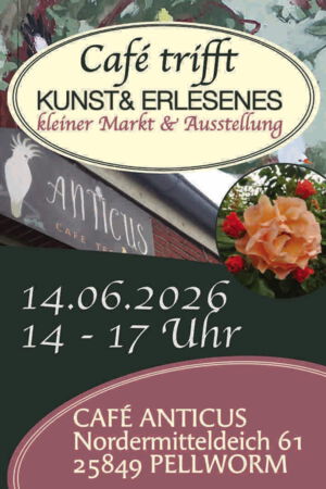 Es gibt was Neues: Am 14.06.2026, 14-17 Uhr veranstalten wir erstmals einen kleinen, feinen Markt mit Ausstellung im Café Anticus.